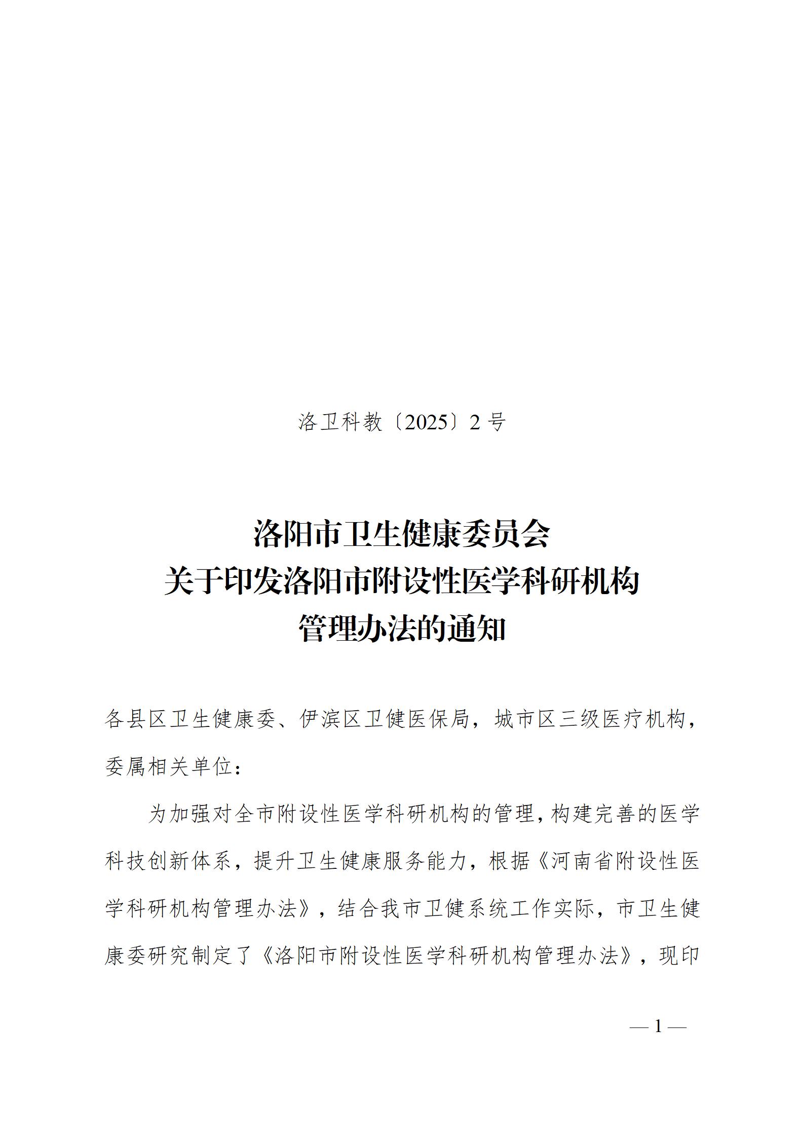 洛卫科教〔2025〕2号 洛阳市卫生健康委员会关于印发洛阳市附设性医学科研机构管理办法的通知